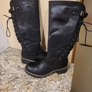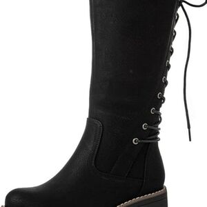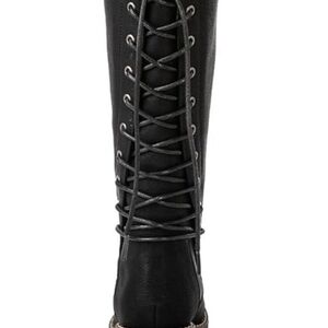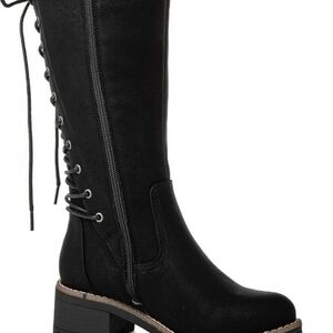 GLOBALWIN Women's Lace Up Knee High Riding Combat Boots Comfortable Gothic Motorcycle Boots for Women with Zipper