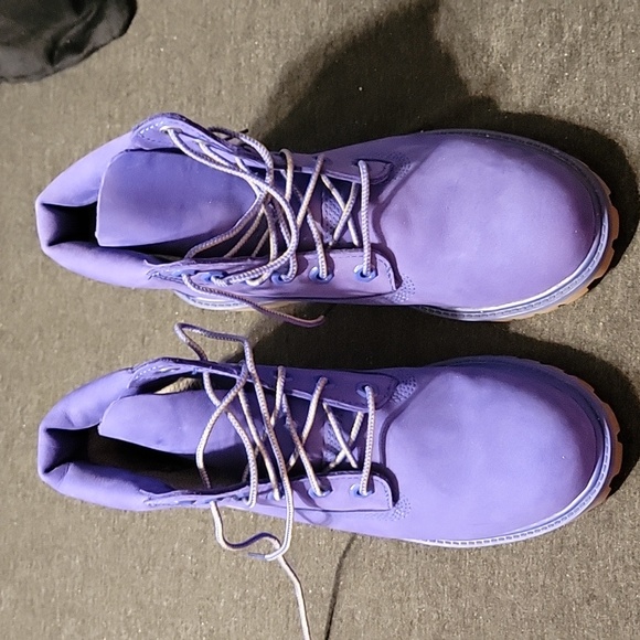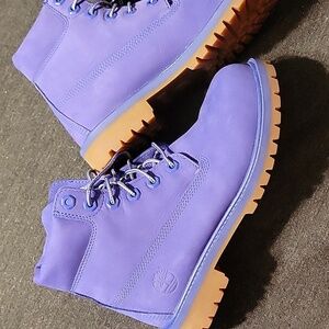 nwot... never worn timberland boots. they are a blue/purple color