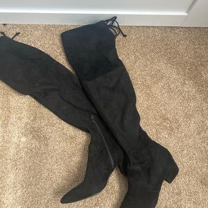 black over the knee boots! Size 8.5. Worn once. Have ties to tie them around the knee. Purchased from target last fall.