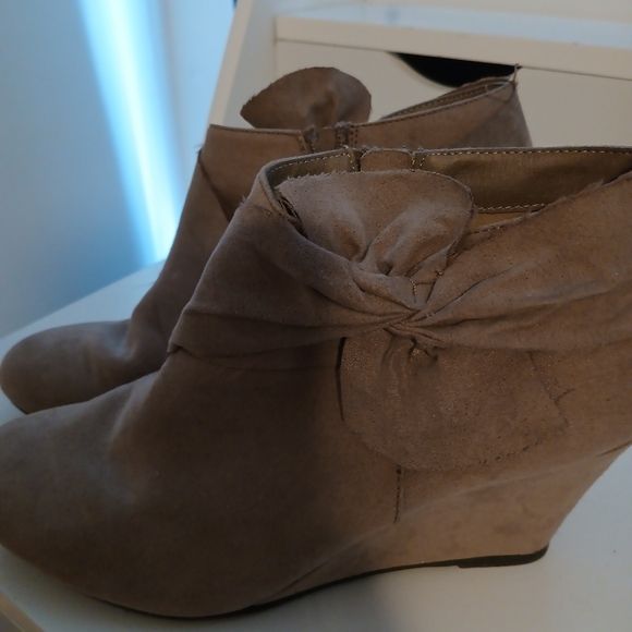 taupe suede like wedge ankle boots