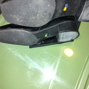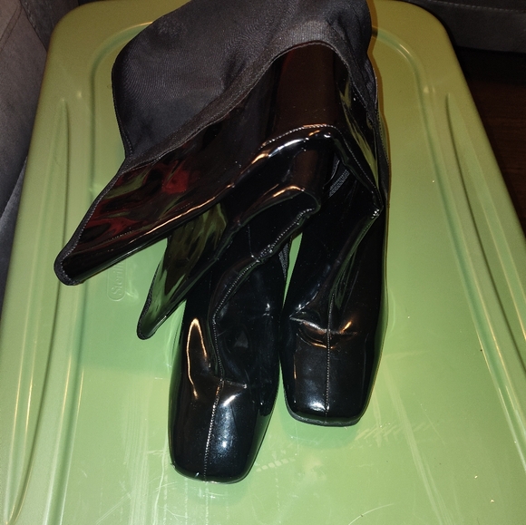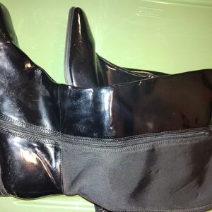 Black patent leather and mesh boots for large calves.