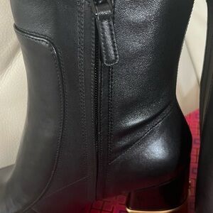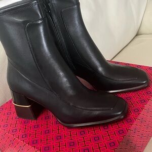 Tory Burch Leather: Cowhide Gold-Tone Hardware And Logo At Heels Block Heel Zip Closure At Side Square Toe Leather Sole With Rubber Patch Leather Lining Measurements Heel: 3In / 75Mm.