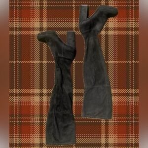 black suede over the knee mid thigh stretchy ariana boots with 3.5" heel. has few scuffs on toe, not noticeable. fits 6/6.5 #gothboots #kneehighboots