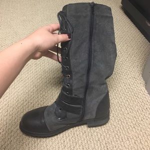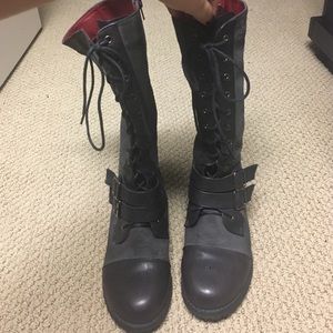 Black and Gray Flat Boots. Worn 1 time. Perfect for Fall. Perfect Condition.