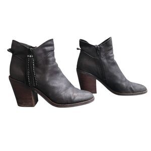 Boots Lucky Brand Black Leather Studded Tassels Country Western Bohemian Biker Booties