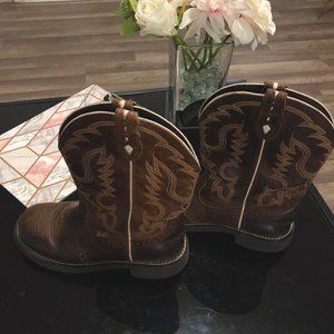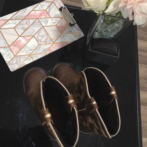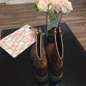 These were worn and loved. All the flaws are shown in the picture! Has discoloring as boots get but gives it lots of character. See pictures for details. Feel free to ask any questions!