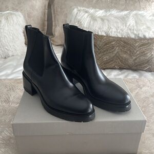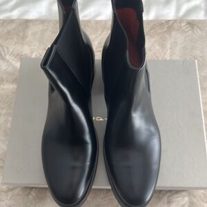New Santoni ankle boot. Box included black leather with lug sole. Mint!