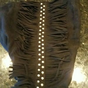 Fringe, beaded, zip up