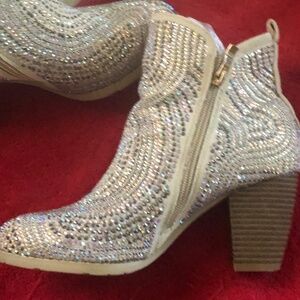 The boots are & 40 now is the time to use in winter suede and the white Rhinestone pair $ 40 suede tan are suede also all sandals are$ 25 snake red wrap around your calf low heal & brown slip on $ $20 sold separately!