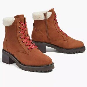 Boots-8 Wide Ankle Bootie Hiking Hiker Brown Faux Suede Fur Zip Shoe Lane Bryant