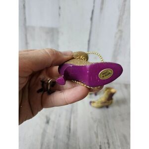 Boot shoe heel glitter gold purple ornament Xmas vintage tree set