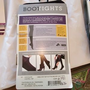 Style 501 Cable Knit. Mid calf high sock woven into tights. Size B fits 5'1" to 5'7". 105 to 150 lbs