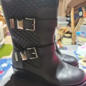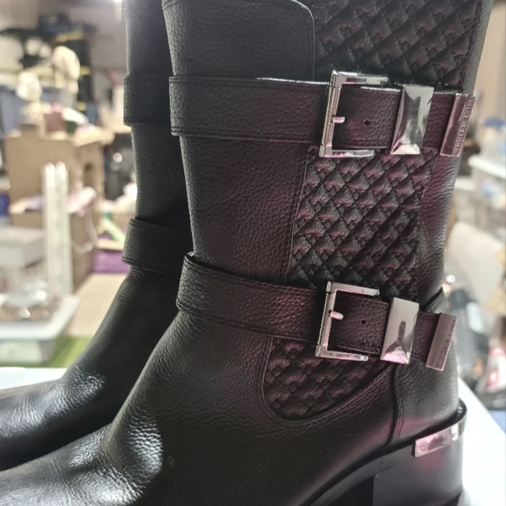 Black leather boots with silver hardware. Size 9. Never worn...