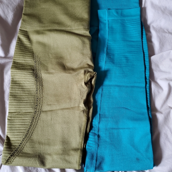 Medium. Original booty scrunch leggings from Curves n Combatboots. High compression! Blue pair has a small stain on the leg shown in picture.
