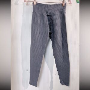 Stylish textured activewear set in gray. Includes a sports bra and leggings.