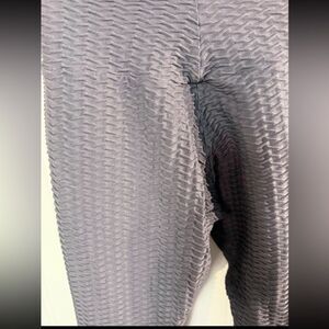 Stylish textured activewear set in gray. Includes a sports bra and leggings.