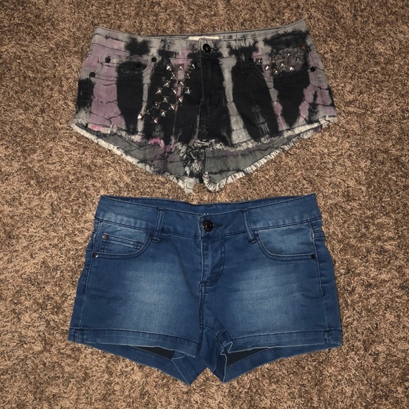 First short is from Arphrodite made in Los Angeles size small . Like new . Studs around pockets . Real pockets front & back . Second short is from celebrity pink size 01 but fits me that I’m size 4. Real pockets front and back . Washed off appearance ( that’s the style of the short ) . Both shorts for 12 or one for 7