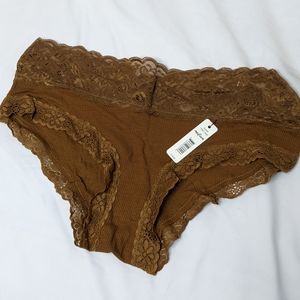 2 pairs of panties, one thong and one bikini style. Both lace! I love this brand, these colors just aren't for me!