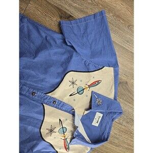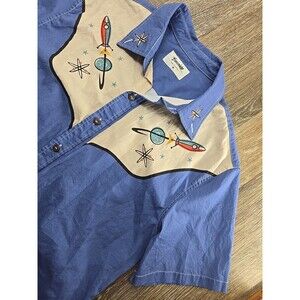 BoozeLeLe 1950s Atomic Rocket Western Button-Down Shirt Mens Medium Blue