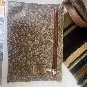Borbonese Bucket Bag Leather/ Canvas Drawstring w/Pouch Vintage 1980 Italy