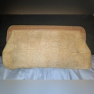 This elegant Borbonese tan leather clutch is perfect for any occasion. Its sleek design and high-quality material make it a must-have accessory.