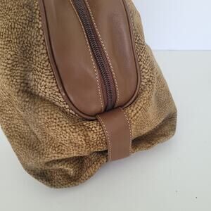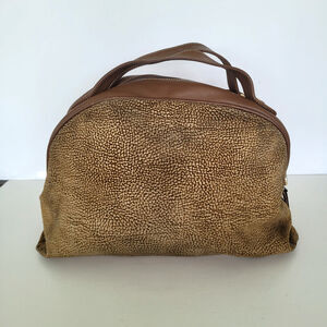 Borbonese Redwall Quail Pattern Suede Leather Dome Handbag Bag Boho Brown Large