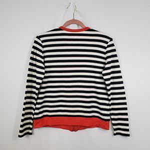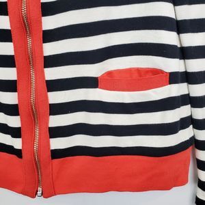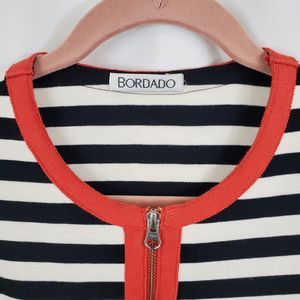 Bordado 100% Pima Cotton Knit Full Zip Sweater Striped Contrast Trim Sz M