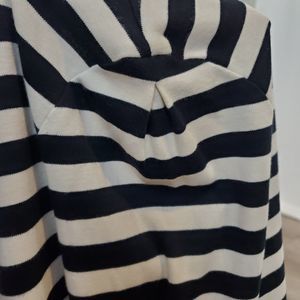 Bordado 100% Pima Cotton Knit Full Zip Sweater Cardigan. Striped. Contrast orange trim. Small front pocket. Very soft. Made in Peru