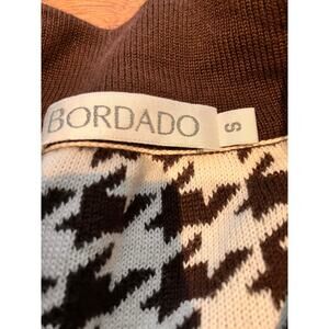 Bordado Women's Cardigan Small Houndstooth Brown White S Zipper Zip Up Knit