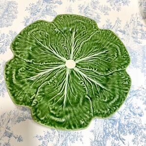 Bordallo Pinheiro Cabbage Leaf Green Large 12” Cake Stand Made in Portugal EUC