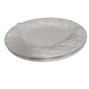 Bordallo Pinheiro White Grape Rim 9 3/8 Luncheon Plates - Set Of 2 - Excellent.
