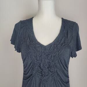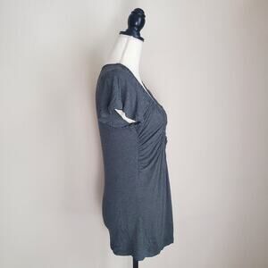 This versatile top features a flattering V-neck and short sleeves, making it perfect for layering or wearing on its own. The front ruching adds a touch of texture and shape, giving you a sleek, fitted silhouette that’s both comfortable and stylish.