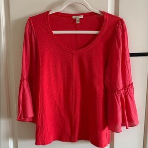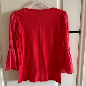 Elegant scarlet blouse with flowing bell sleeves. Perfect for any occasion.