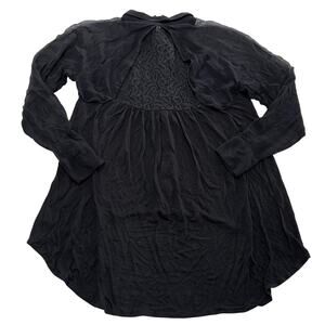 Bordeaux Shirt Womens Small Black Sheer Button Down Long Sleeve Lace Back Top