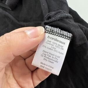 Shell is 100% modal. Contrast is 100% silk. Lace is 75% cotton and 25% nylon. Hand wash cold; lay flat to dry or professionally dry clean.