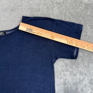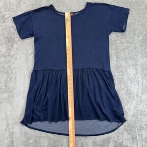 Bordeaux Short Sleeve Drop Waist Women's Large Blue Top Wide Ruffle Knit Hi Low