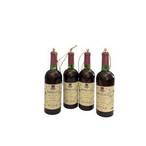 Bordeaux Wine Bottle Christmas Ornaments With Gold String - Set of 4