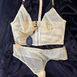 Secured together with 24k gold plated swan hooks, the Cadi Body can be worn as a body longline soft cup bra or high waist thong, the ultimate in versatility. Featuring luxurious foiled mesh panels and adjustable back strap detailing, this showpiece body is a standout piece from the Cadi collection. Style as outerwear or pair with the Circadian collection.