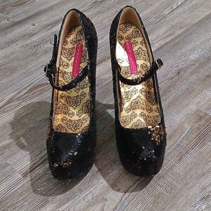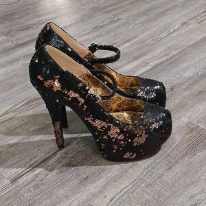 Bordello black gold shifting sequin stiletto 6" heels Sz 7 NWOT