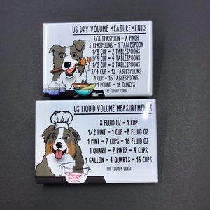 This cute, magnet set contains 2 high quality handmade magnets. There is a dry conversion chart on one magnet and a liquid conversion chart on the other magnet. Each magnet measures 2x3". Makes a perfect gift for Christmas, Mother's Day, Valentine's Day and birthdays!