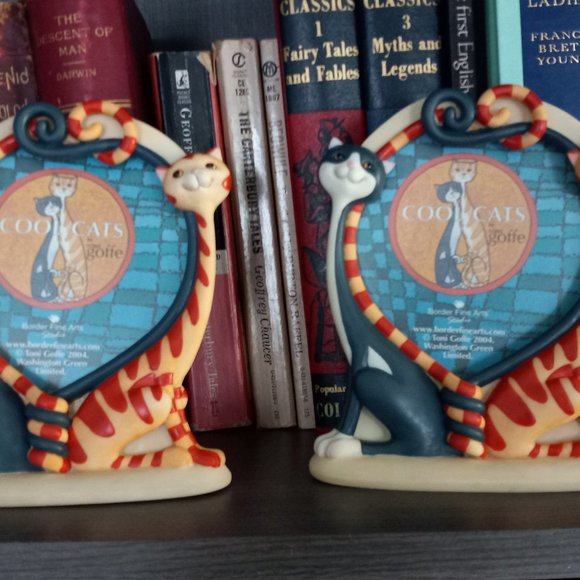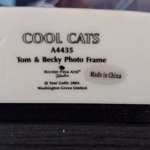 Border Fine Arts Studio limited edition sculpted figurines on tabletop picture frame featuring two cats with tails intertwined. Highly collectible.