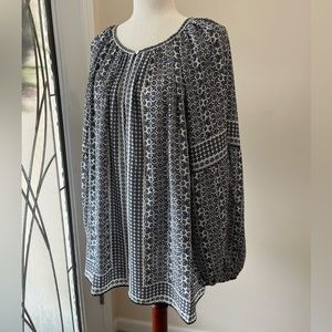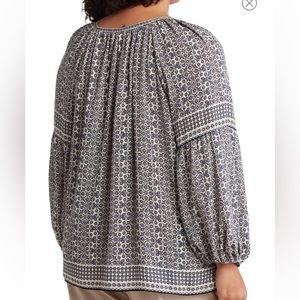 Pretty mandalas bring a soft finish to an airy long sleeve blouse.
