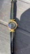Elegant Borel watch with a gold case and black strap. Unique dial design works properly. Strap shows signs of wear given the age of the watch.