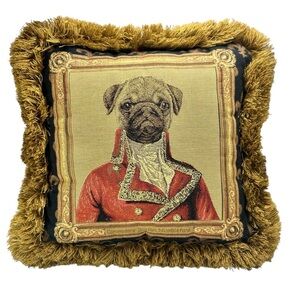 Borgata Regency Throw Pillow Pug Military Uniform Red Coat Formally Dressed Dog