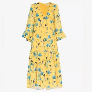 Borgo De Nor Iris Yellow Floral Print High Low Dress Butterfly Print Size 6