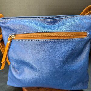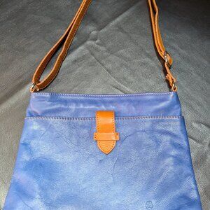 Borgo Degli Etruschi Womens Crossbody Bag Medium Marine Blue/Tan Soft Leather