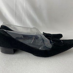 Borgo Degli Ulivi Black Sude Semi-Pointed Toe Slip-on Low Block Heel Shoes Sz 39, Pre-owned