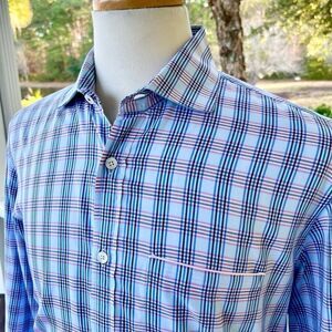 Excellent condition Borgo Ognissanti Borgo 28 Dress Shirt. Medium. Light blue with multi-color check pattern. No stains or damage at all. Very nice shirt. From smoke-free pet free home. See pictures of actual item to confirm condition. Measurements laying flat: