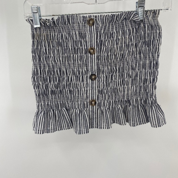 Cute blue and white striped tube top with faux buttons up the front. See pics for material content. Gently worn