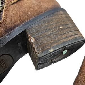 Born 8 Jorgette Buckle Brown Leather Ankle Boot Boho Suede Western Casual, There is a scratch on one of the heels